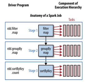 Spark高层调度器(DAG Scheduler)利用RDD的dependencies为job中的stages构建DAG(Directed Acylic Graph)
